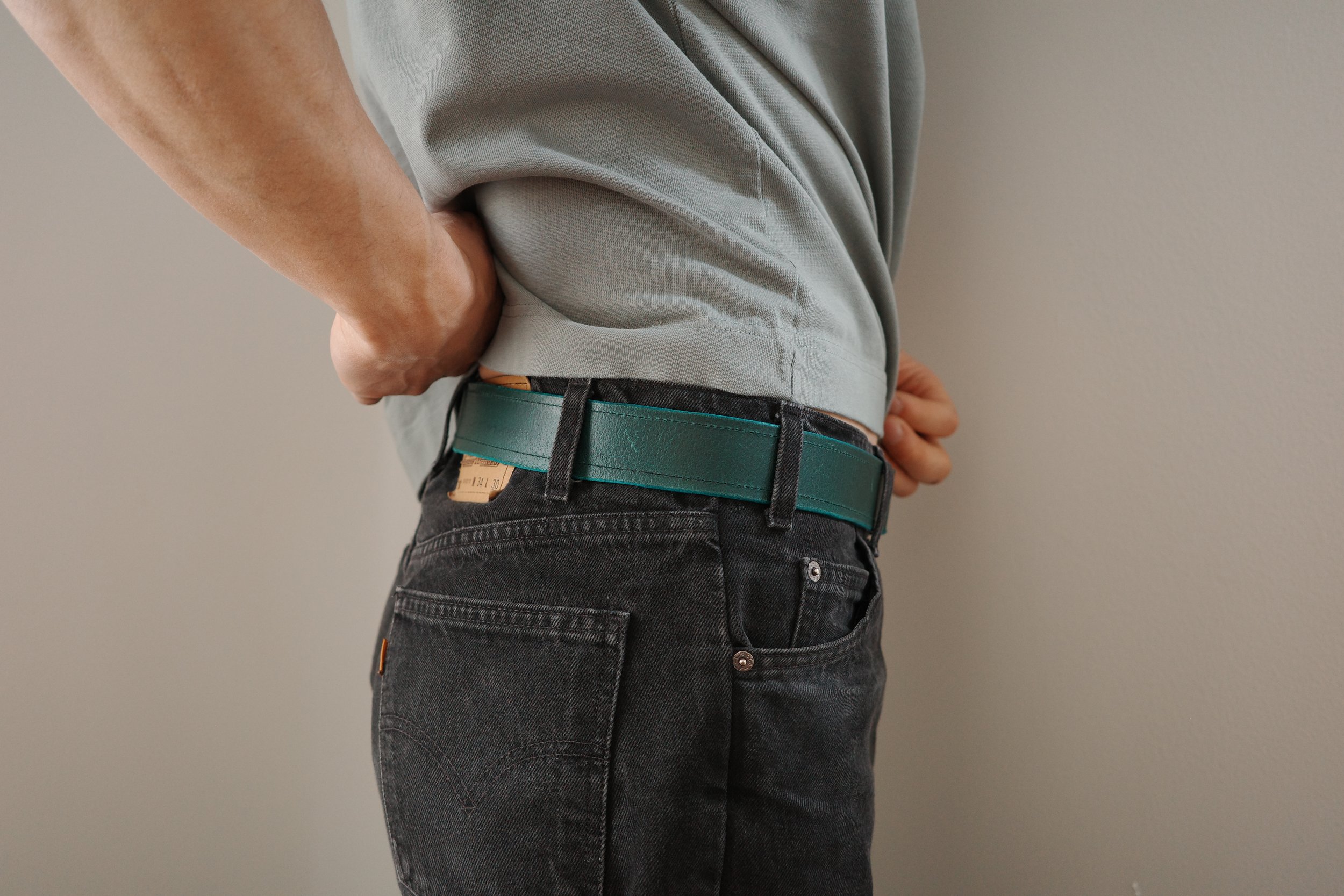 I sewed the belt straps together for extra security and left a 1/4 inch seam allowance. With the belt full constructed, I started burnishing the edges of the leather. I found burnishing greatly reduces the friction a belt has with belt loops, creating a more effortless user experience.