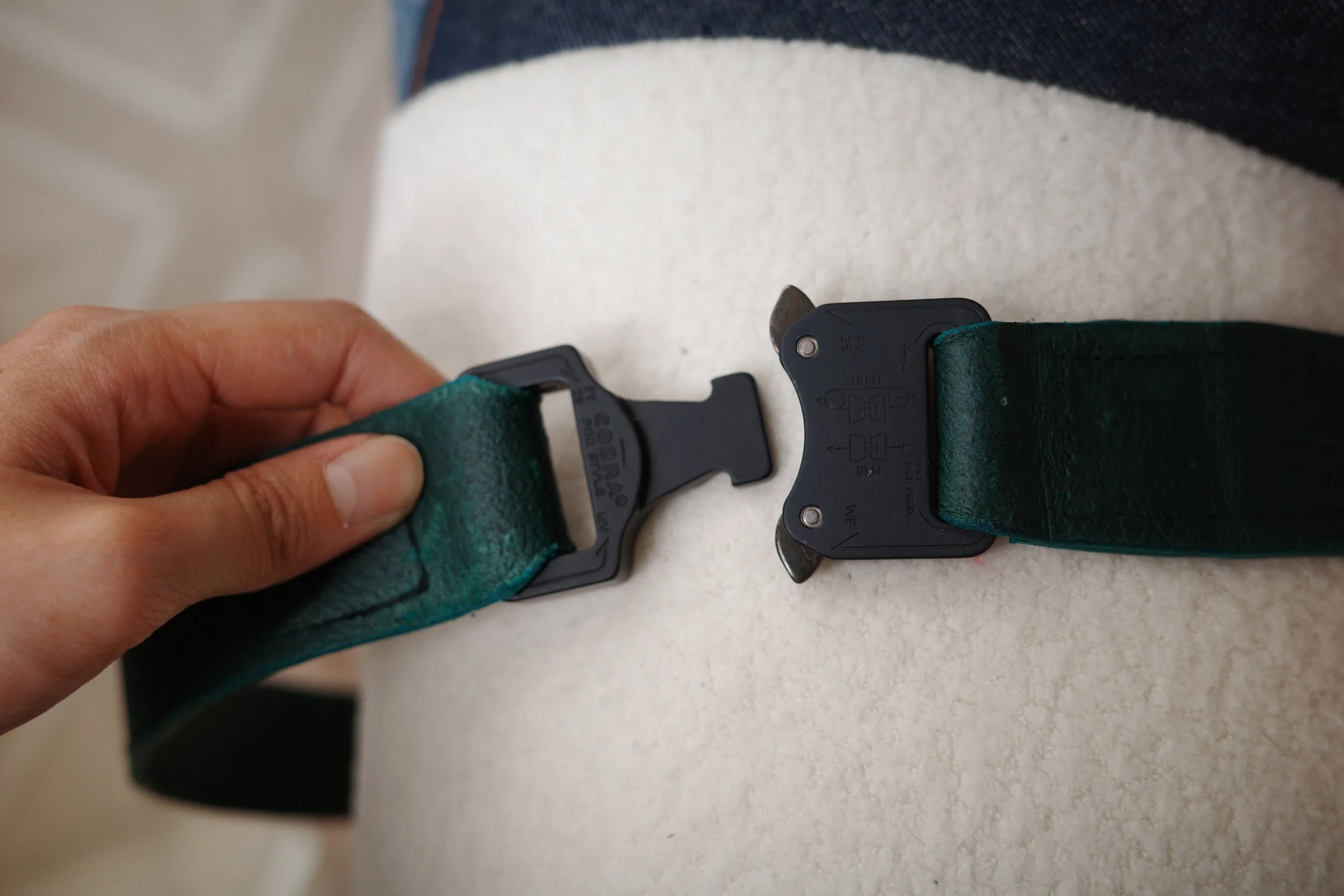 I do not typically wear a belt but when I do, I rarely ever change the size. In an effort to streamline the process of getting dressed, I decided I wanted a belt without size adjustments and a quick, simple, and secure clasping mechanism. For this, I wanted to use Cobra clips. These clips are found in many military and tactical applications because they feature the COBRA® Quick Release, a fail proof design does not allow accidental opening under load.