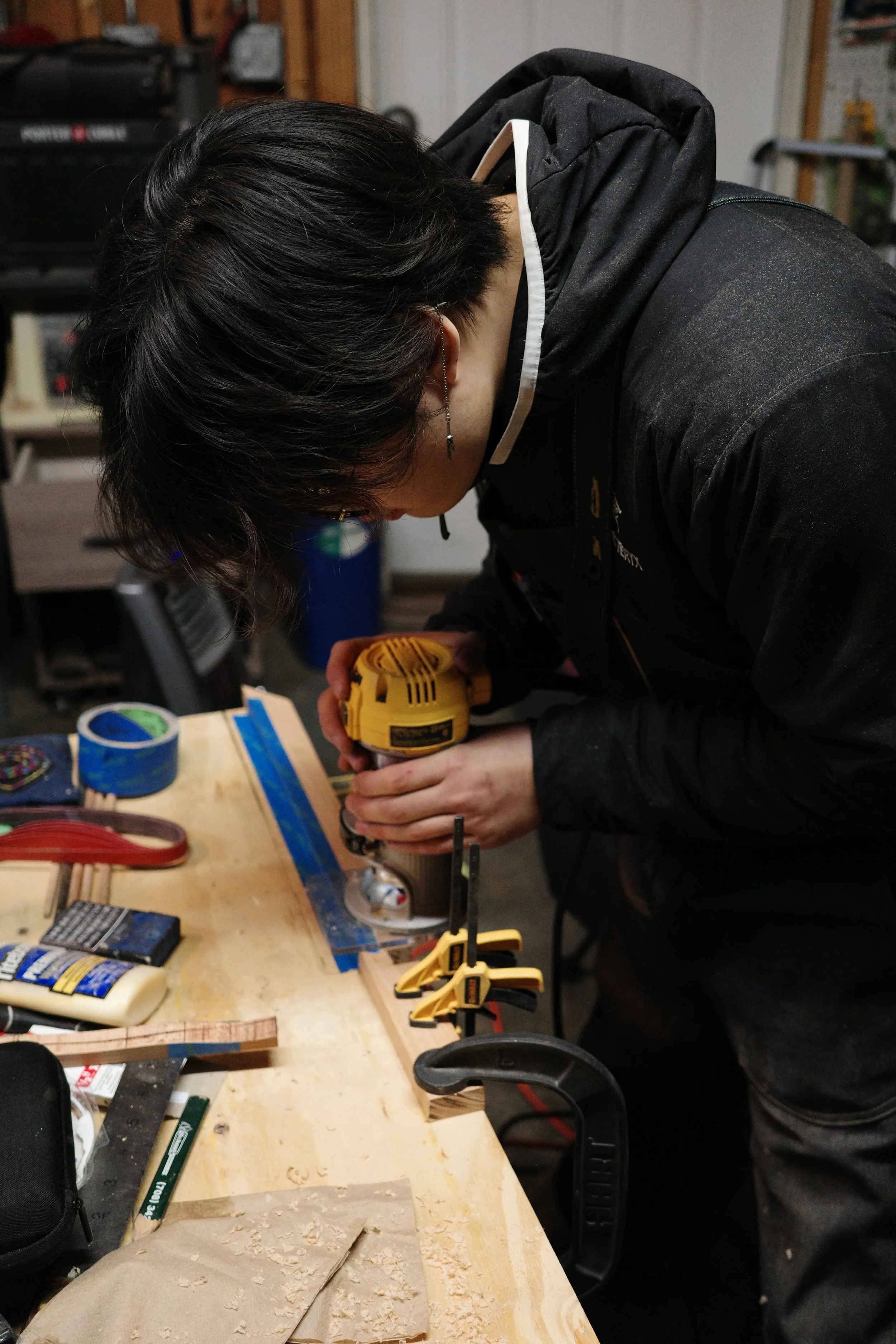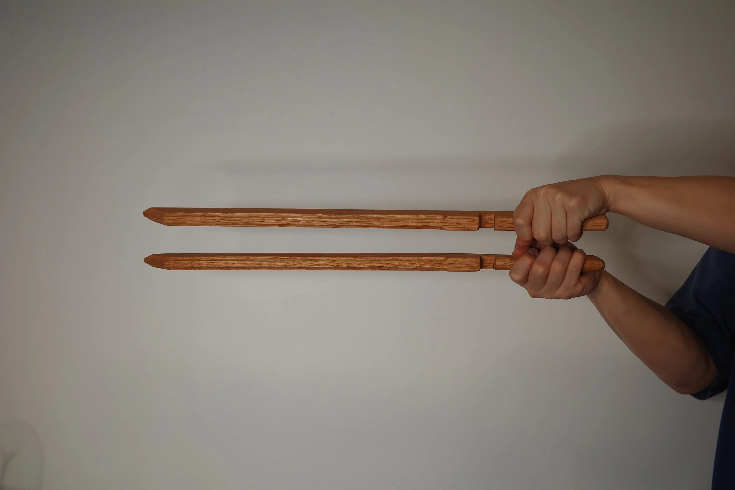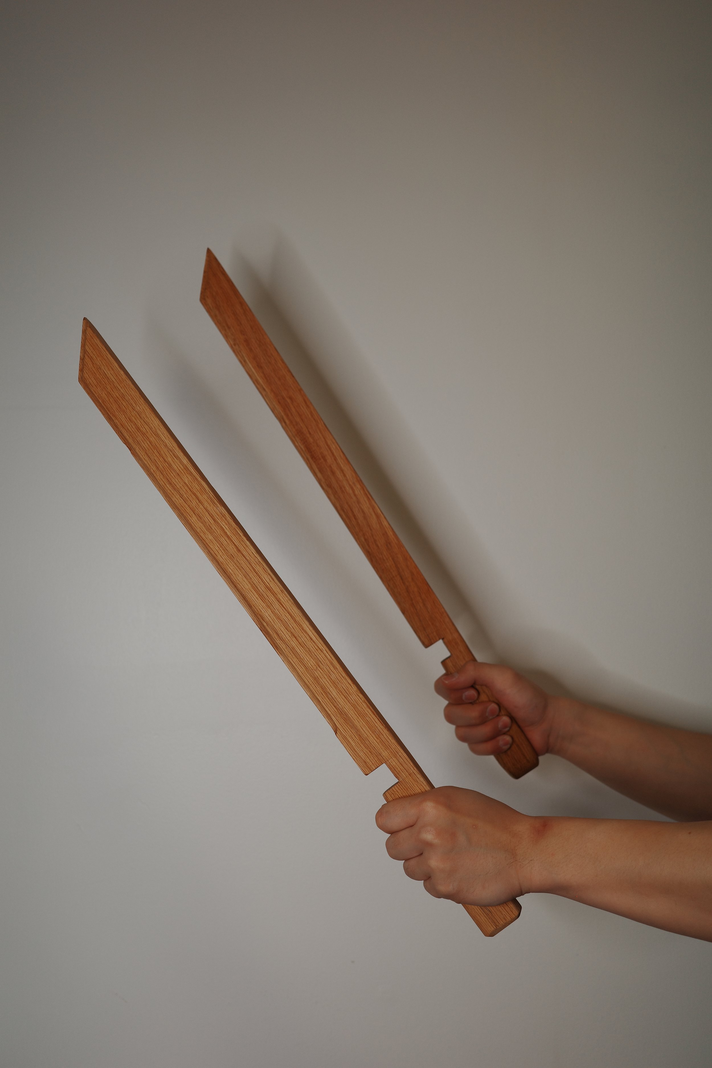Whenever I work I try to add elements of play and I think playing is important for motivation and inspiration. It helps me tap into a flow state that is consistently reinforced by positive feedback. It also diminishes the stress of mistakes and imperfection that often drain my mental battery. So when I faced a mental block, I decided to do a side quest and make some swords… because I am just a boy and I like to play with toys. I started with a symmetrical piece of scrap wood and cut it in half. A couple diagonal cuts to the tips and the point of the sword was made. A router was used to give the bottom edge a concave fillet, this created the “edge” of the blade. The handles were then sanded and shaped to make each sword unique. There was also an existing cut out on the scrap and allowed the swords to interlock, making them a set. A couple friends and I decided to play fight with the swords to further each blades character with dings and scratches. All in all, this projects objective was purely for fun and it fulfilled that objective.